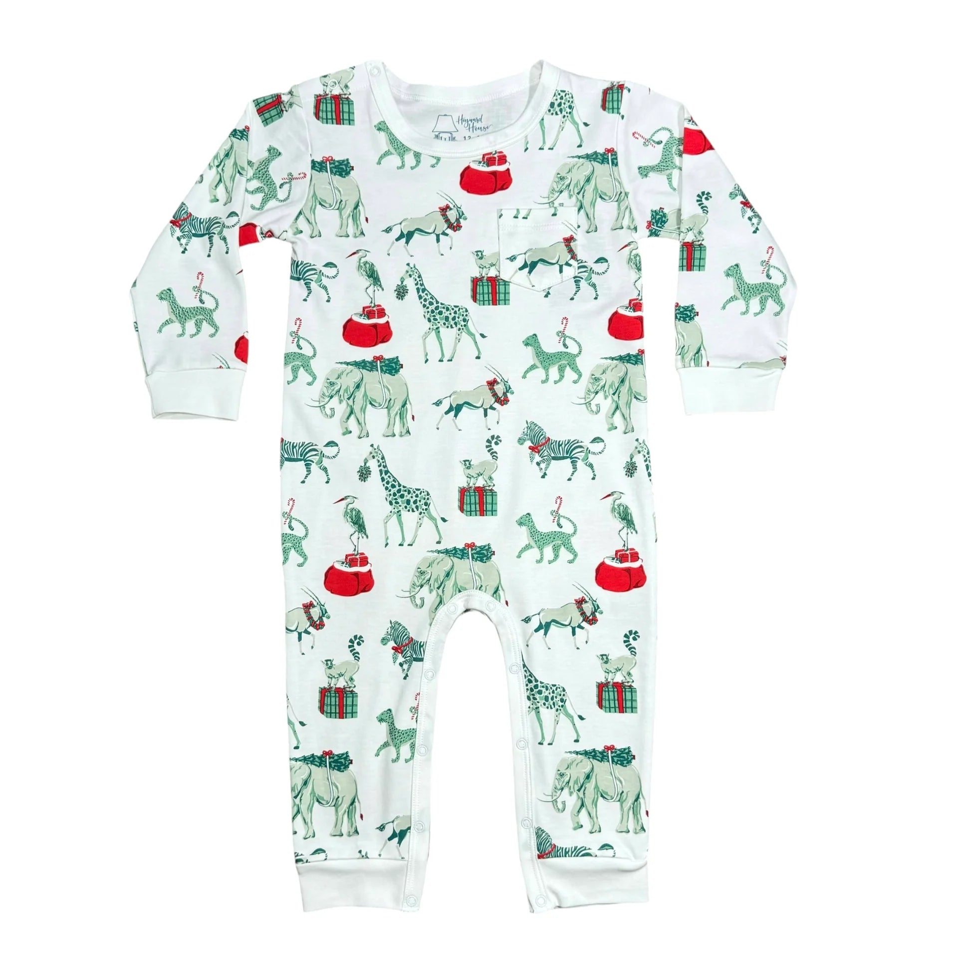 Our new safari Christmas print has all of the beloved animals of our chinoiserie print but enjoying the holidays with new colors and accessories!