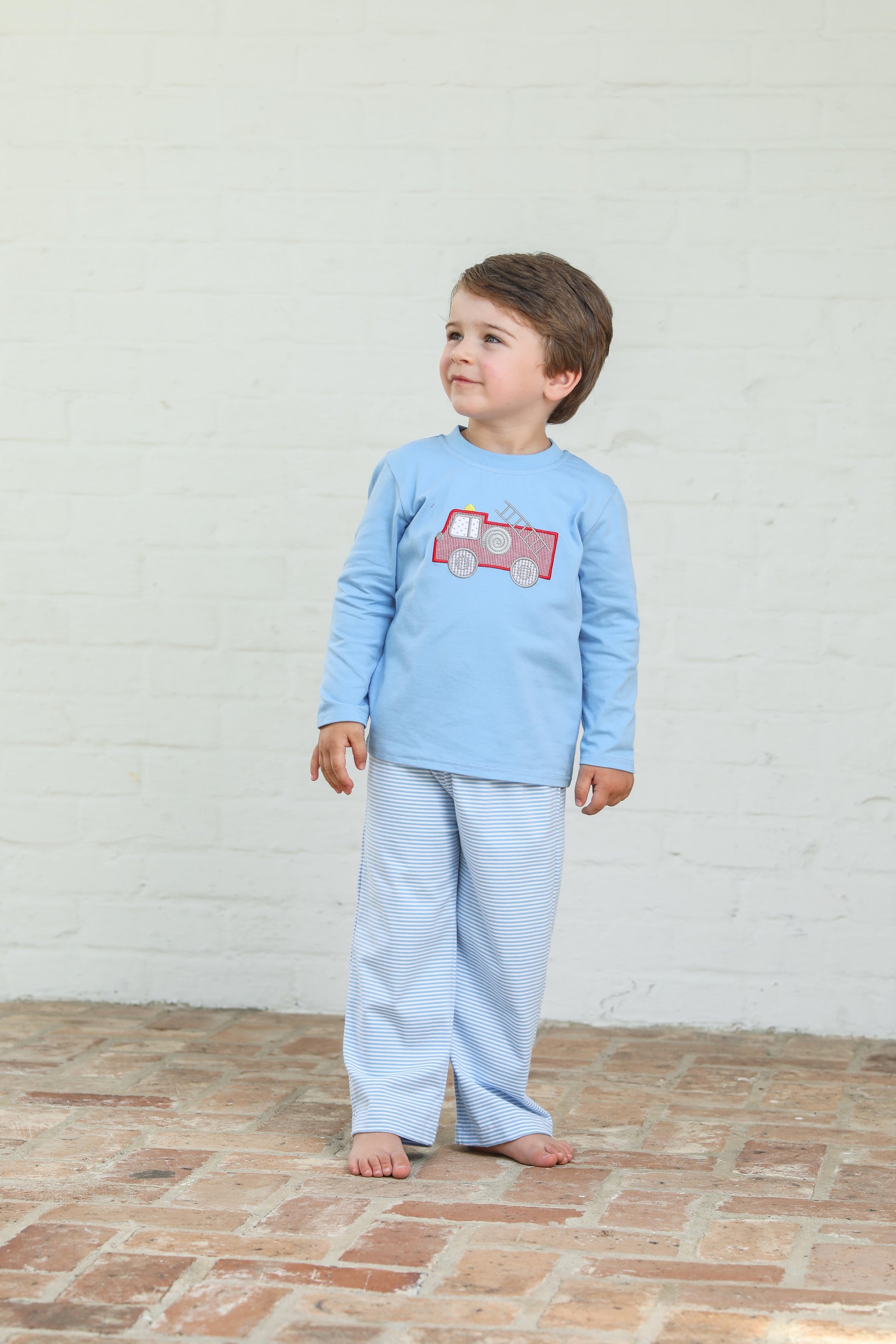 Get your little firefighter ready for adventure with this playful Fire Truck Pant Set. Featuring a bright fire truck applique, & comfy pants that are perfect for active days filled with fun and imagination. Ideal for everyday wear or special playtime missions!