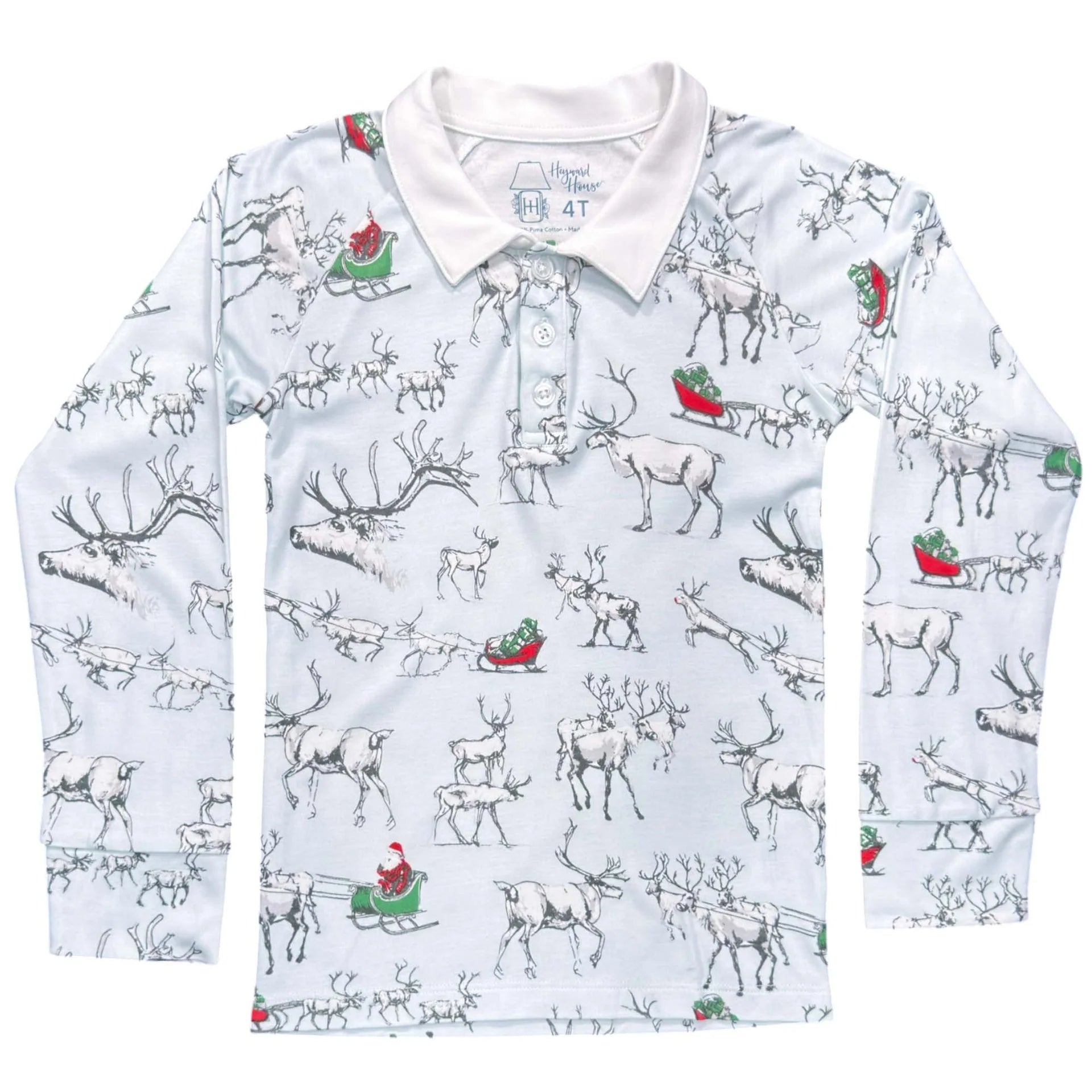 This charming Kids LS Polo features a playful print inspired by behind-the-scenes reindeer training at the North Pole, adding a touch of magic to everyday wear. Crafted with comfort in mind, it blends cozy long sleeves with an elegant design, perfect for little ones with big imaginations.