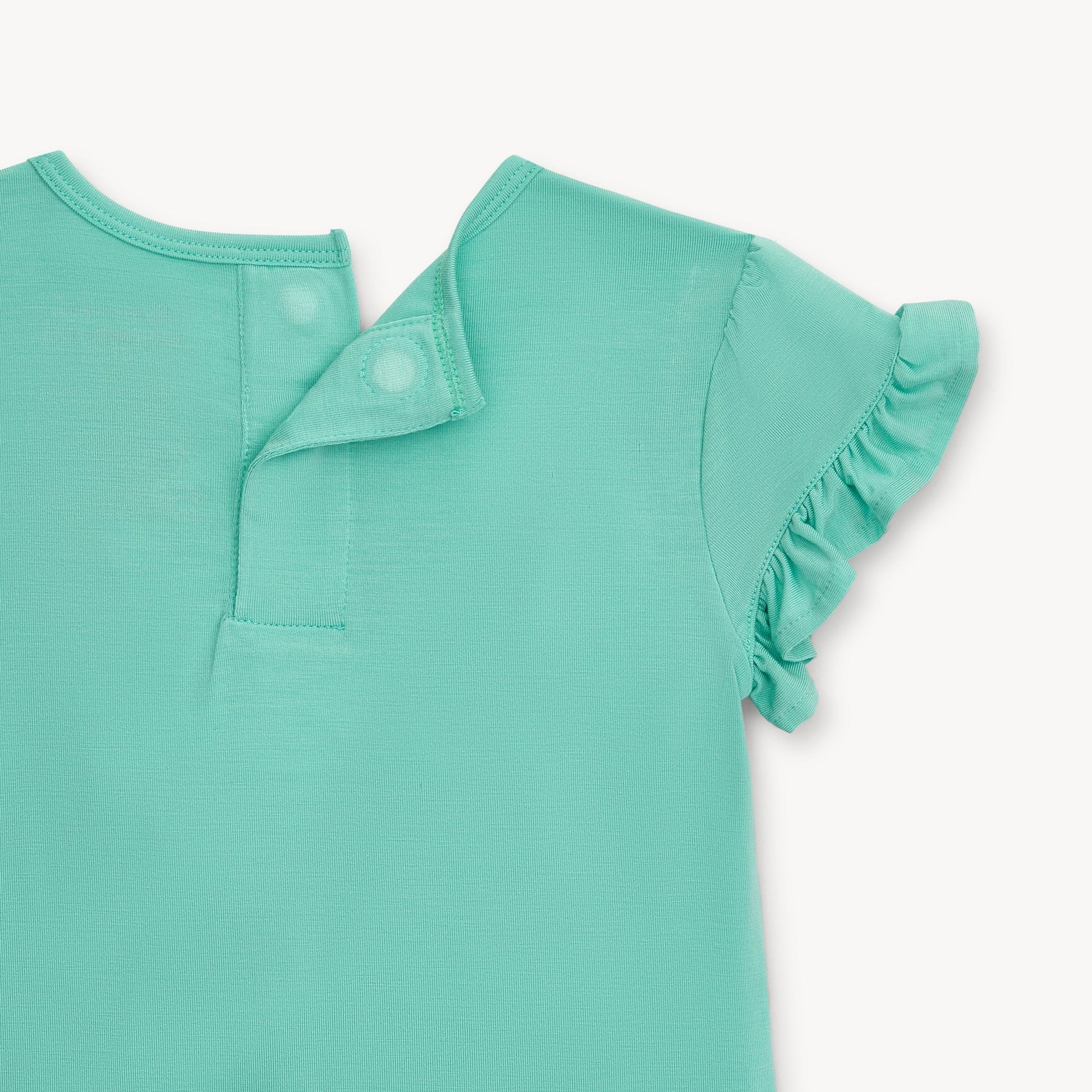 meet the play all day top + flutter skort set, made for swings, slides + sunshine. The top comes with magnetic closures that will forever change a kid's dressing game with over-the-head dressing that's super quick and easy. a short and sweet flutter skort with built-in biker shorts completes the set. both pieces are made of long-lasting TENCEL™ modal withstand hours of warm-weather play and the laundry loads that follow.