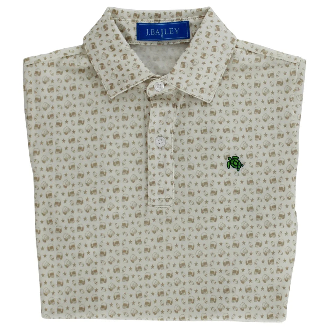 Game day style meets everyday comfort in our Football on Tan Polo. Airy, easygoing fabric and fun appliqué details make it a must-have for little sports fans.