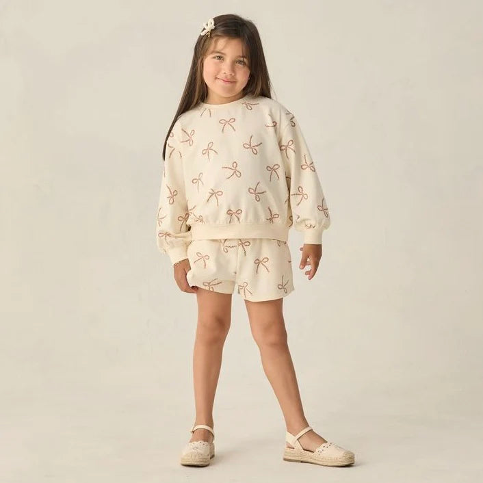A relaxed sweatshirt and matching shorts with pockets and an elastic waistband come together in this cozy french terry summer set.